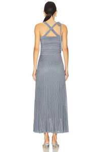 - Self: 88% viscose 12% metallized fiber Lining: 100% viscose Contrast Fabric: 76% viscose 13% polyamide 10% metallized fiber 1% elastane - Dry clean only - Fully lined - Pull-on styling - Shoulder strap tie - Midweight knit fabric with metallic threading - Revolve Style No. ZIMM-WD595 - Manufacturer Style No. 3371DSS255