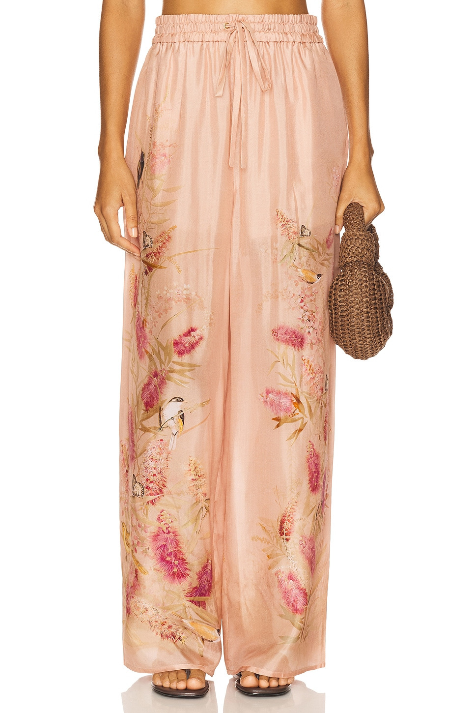 - Self: 100% silkLining: 100% silk - Dry clean only - Full-length pant with a wide-leg shape - Elasticized high waistband - Functional side pockets.20" at the knee and 15.5" at the leg opening - Revolve Style No. ZIMM-WP51 - Manufacturer Style No. 3254PSS255