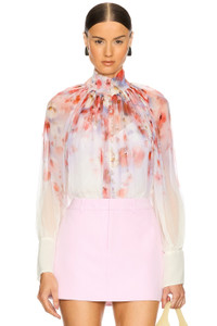 - 100% viscose - Made in China - Dry clean only - Back loop button closure - Mockneck styling - Button cuffs - Lightweight chiffon fabric - Revolve Style No. ZIMM-WS199 - Manufacturer Style No. 5768TR251