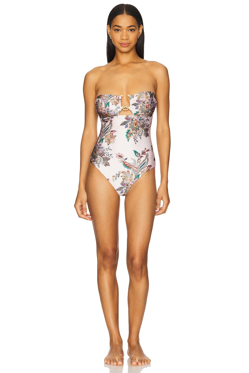 - Self: 80% polyamide 20% elastane Lining: 92% recycled polyamide 8% elastane - Hand wash cold - Removable and adjustable shoulder straps - Removable padded cups - Gold-tone wire knot detail at bust - Midweight swimwear fabric - Revolve Style No. ZIMM-WX703 - Manufacturer Style No. 4217WSS251