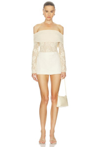 - Self: 90% polyamide 10% elastane Contrast Fabric: 90% viscose 10% elastane Lining: 81% polyester 19% elastane - Made in China - Dry clean only - Pull-on styling - Snap button closure - Lightweight crepe fabric - Off-shoulder styling - Revolve Style No. ZIMM-WS257 - Manufacturer Style No. 7123TC261