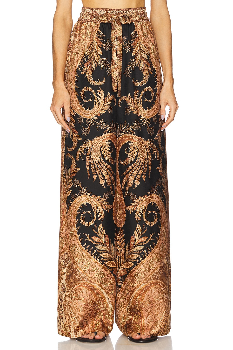 - Satin textile - Imported - Dry clean recommended - Front drawstring tie closure - Elasticized waistband - Midweight satin fabric with side seam pockets - Item not sold as a set.26" at the knee and 26" at the leg opening - Revolve Style No. ZIMM-WP50 - Manufacturer Style No. 1111PF251