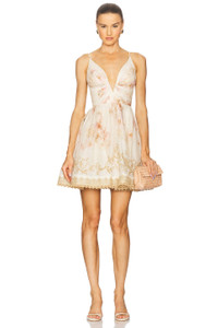 - 55% linen 45% silk lining: 100% viscose - Dry clean recommended - Fully lined - Hidden back zip closure - Adjustable shoulder straps and structured neckline - Lightweight floral organza fabric - Revolve Style No. ZIMM-WD607 - Manufacturer Style No. 5302DF251