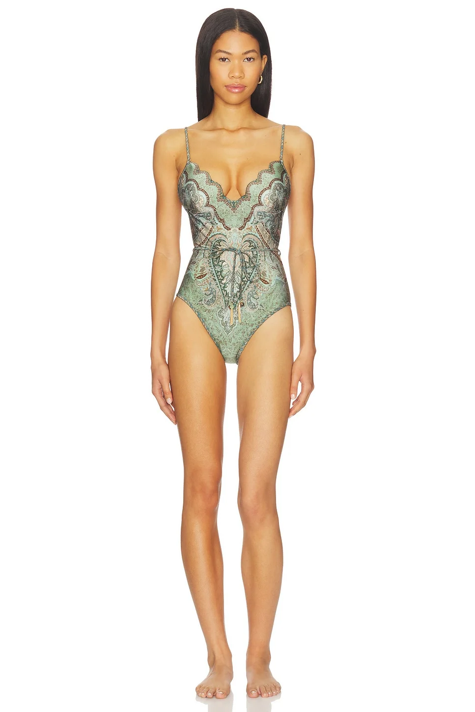 - Self: 80% polyamide 20% elastane Lining: 92% recycled nylon 8% elastane - Made in China - Hand wash cold - Back hook closure - Adjustable shoulder straps - Stretch jersey fabric - Detachable waist tie - Revolve Style No. ZIMM-WX735 - Manufacturer Style No. 5755WRS262