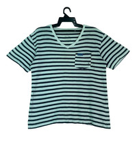 BLUE BLUE japan indigo stripes pocket v neck shirt