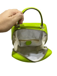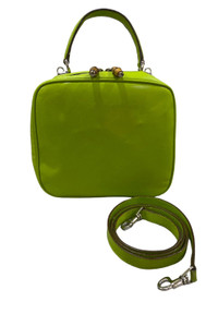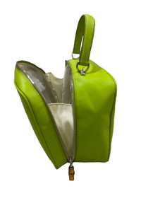 Vtg GUCCI bamboo neon green leather vanity cosmetic case bag