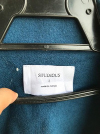 PLEASE CONTACT TO ME WITH ANY QUESTION BEFORE BUYING.. PLEASE READ THE DESCRIPTION AND POLICIES BEFORE BUYING. TAG BRAND :- STUDIOUS SIZE ON TAG : 1 ACTUAL SIZE MEASUREMENT :- ARM PIT TO ARM PIT :- 20.5”incher BACK COLLAR TO HEM:- 28”incher PLEASE COMPARE THE MEASUREMENT WITH YOUR GARMENT CONDITION : 8/10 Refer Pictures COLOUR :- Blue View Pic.. MATERIAL : Polyester / Wool Kindly read my shipping and policies. SHIP WORLDWIDE VIA DHL GLOBAL MAIL. ⚫️Takes 14 working days to arrive. ⚫️Safely trackin number=You can track n trace until it arrive! ⚫️Item will be ship in 1-3 days after payment cleared. THANKS FOR WATCHING MY ITEM! PLEASE SEE MY OTHER ITEM TOO. THANKS!!