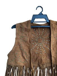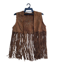Vintage 90s suede leather fringe vest jacket american native