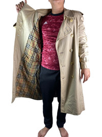 PLEASE CONTACT TO ME WITH ANY QUESTION BEFORE BUYING.. PLEASE READ THE DESCRIPTION AND POLICIES BEFORE BUYING. TAG BRAND :-BURBERRYS SIZE ON TAG : Not stated ACTUAL SIZE MEASUREMENT :- ARM PIT TO ARM PIT :-21”incher BACK COLLAR TO HEM:-42”incher PLEASE COMPARE THE MEASUREMENT WITH YOUR GARMENT CONDITION :8/10..Refer Pictures COLOUR :-Beige View Pic.. MATERIAL : 100%Cotton/Polyester lining Kindly read my shipping and policies. SHIP WORLDWIDE VIA DHL GLOBAL MAIL. ⚫️Takes 14 working days to arrive. ⚫️Safely trackin number=You can track n trace until it arrive! PAYMENT ⚫️Accept paypal only ⚫️Item will be ship in 1-3 days after payment cleared. THANKS FOR WATCHING MY ITEM! PLEASE SEE MY OTHER ITEM TOO. THANKS!! D24