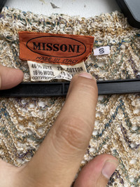 PLEASE CONTACT TO ME WITH ANY QUESTION BEFORE BUYING.. PLEASE READ THE DESCRIPTION AND POLICIES BEFORE BUYING. TAG BRAND :-MISSONI SIZE ON TAG : Small ACTUAL SIZE MEASUREMENT :- ARM PIT TO ARM PIT :-17”incher BACK COLLAR TO HEM:-21”incher PLEASE COMPARE THE MEASUREMENT WITH YOUR GARMENT CONDITION :8/10(Refer Pictures) COLOUR :-View Pic.. MATERIAL : Refer tag Kindly read my shipping and policies. SHIP WORLDWIDE VIA DHL GLOBAL MAIL. ⚫️Takes 14 working days to arrive. ⚫️Safely trackin number=You can track n trace until it arrive! ⚫️Item will be ship in 1-3 days after payment cleared. THANKS FOR WATCHING MY ITEM! PLEASE SEE MY OTHER ITEM TOO. THANKS!!
