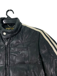 PLEASE CONTACT TO ME WITH ANY QUESTION BEFORE BUYING.. PLEASE READ THE DESCRIPTION AND POLICIES BEFORE BUYING. TAG BRAND : Schott SIZE ON TAG:- Small ACTUAL SIZE MEASUREMENT :- ARM PIT TO ARM PIT :-20”incher BACK COLLAR TO HEM:-24"incher PLEASE COMPARE THE MEASUREMENT WITH YOUR GARMENT CONDITION :8/10..a small defect at back(Refer Pictures) COLOUR :-Black View Pic.. MATERIAL : Laether Kindly read my shipping and policies. SHIP WORLDWIDE VIA DHL ⚫️Safely trackin number=You can track n trace until it arrive! ⚫️Item will be ship in 1-3 days after payment cleared. THANKS FOR WATCHING MY ITEM! PLEASE SEE MY OTHER ITEM TOO. THANKS!!