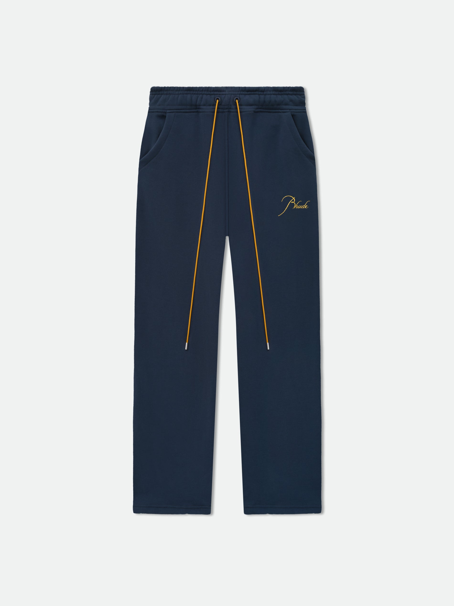 Heavyweight terry sweatpant with signature Rhude script logo embroidered on the front featuring our exaggerated drawstrings in mustard tone. 100% COTTON