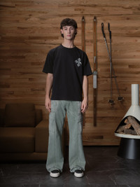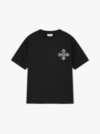 Custom-vintage fit cotton tee shirt with a ribbed neckline and short sleeves. Features RHUDE Cross designs printed on front chest and back. 100% COTTON WE RECOMMEND TAKING YOUR STANDARD SIZE