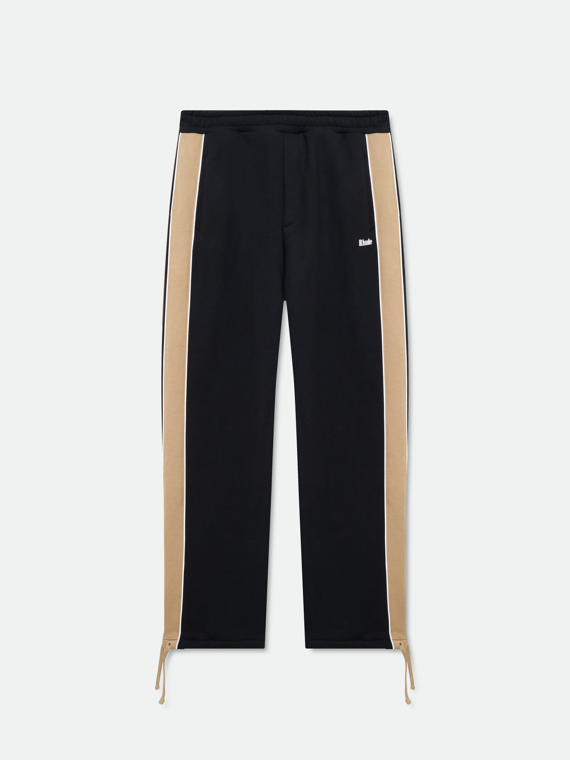 Premium fleece sweatpant with tan stripes down the leg. Features Rhude classique logo on the front. 100% COTTON
