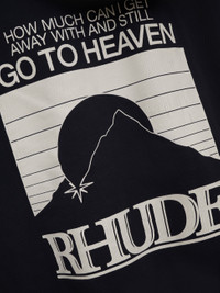 Long sleeve cotton heavyweight hoodie with Rhude "moonlight pack" graphic designs printed on the front and back. Featuring a kangaroo front pocket and dropped shoulders. Each piece is unique and print distressing my vary per style. 100% COTTON