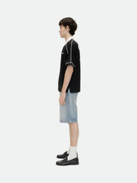 This retro bowling shirt pays tribute to Oxford. Features a front button closure, a notched collar, elbow-length sleeves, and chest patch pockets. 100% POLYESTER
