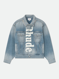Expertly crafted with premium materials, this denim trucker jacket features RHUDE logo printed on front, a removable neck strap, twin pockets, and side pockets at the front. Custom Rhude button closures add unique style to this handcrafted piece, made in Los Angeles. Rhude Website Exclusive Denim Wash 100% COTTON DENIM