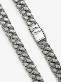Paisley Cuban Link Necklace, features interlocking paisley links made from premium .925 Silver, with a custom RHUDE clasp closure. Length: 20" Includes: RHUDE Packaging Box, microfiber cloth, and care instruction card. Each chain is individually wrapped in plastic, this provides protection for the product during shipping and handling, and once it is removed, the product is considered to have been used and is no longer eligible for a refund. All RHUDE jewelry products are equipped with a hypoallergenic finish. In order to maximize the life of your jewelry, we suggest the following below care instructions: Store your items in a dry area. Avoid contact with cleaning agents, beauty products, water and chemicals. Remove jewelry prior to exposure to moisture. Use provided cloth to maintain shine.