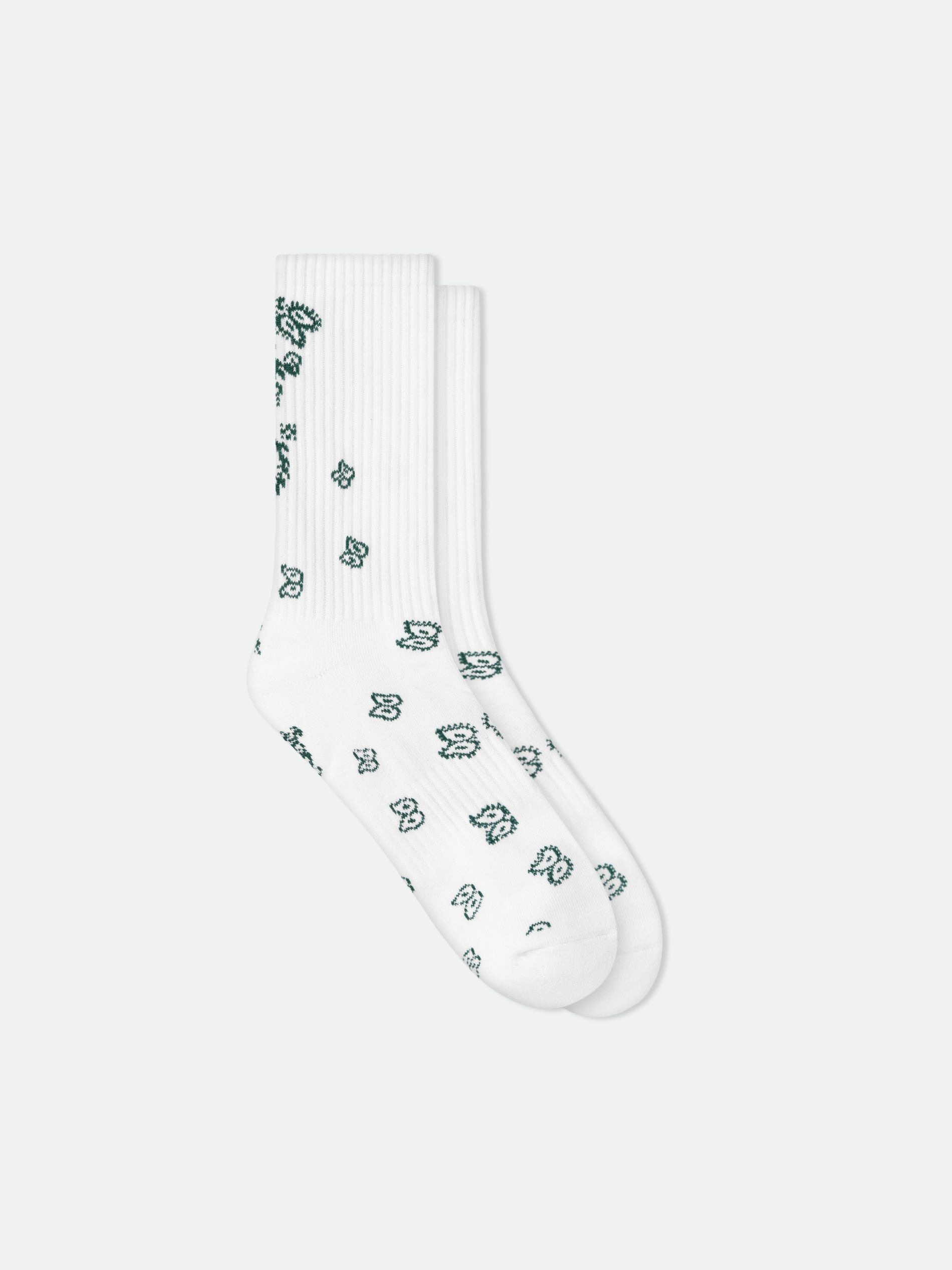 Ribbed poly sock features Rhude bandana all over motif pattern. Designed for athletics and leisure activities. 60% COTTON / 40% POLYESTER One size fits all