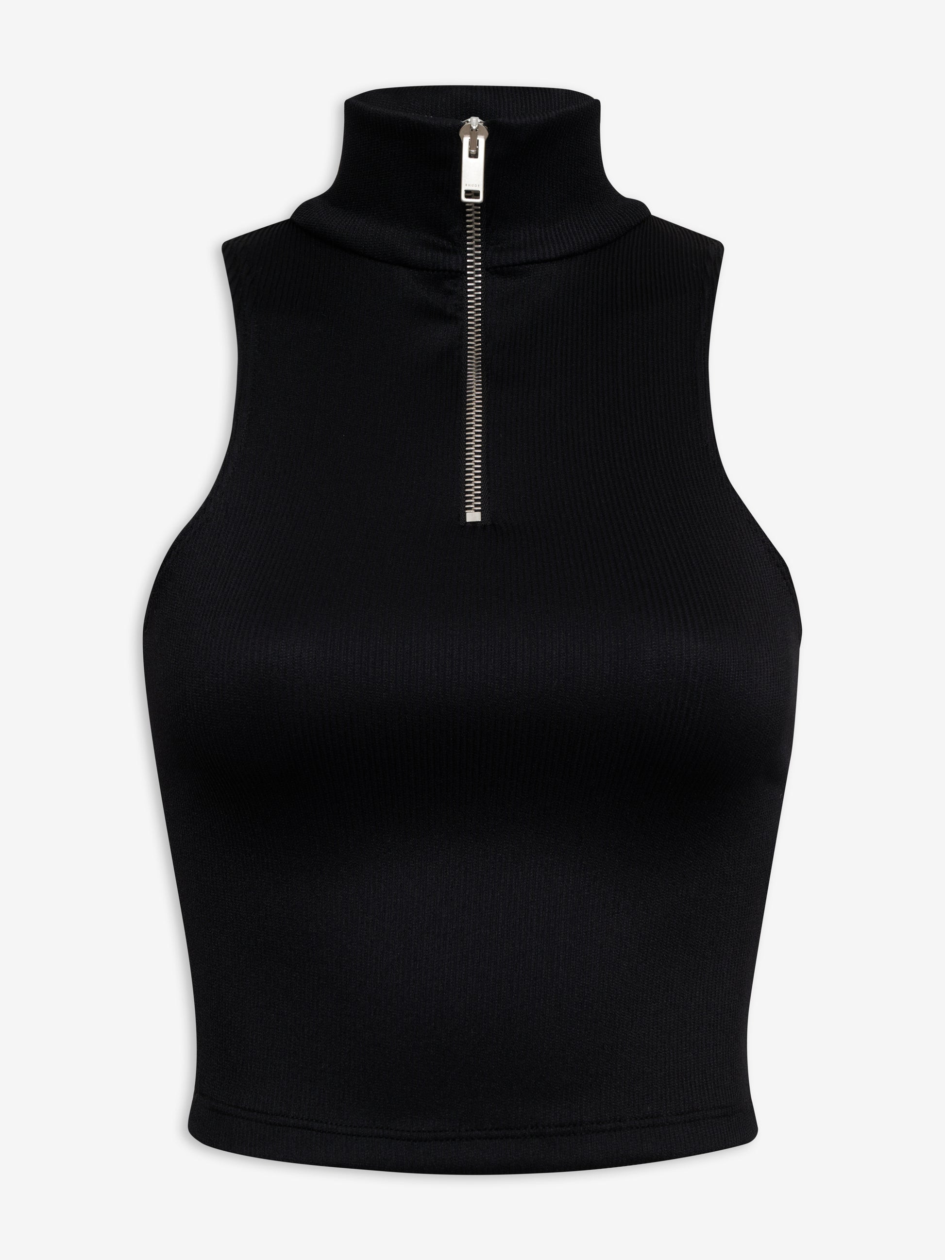 RIBBED KNIT TURTLE NECK ZIP TOP
