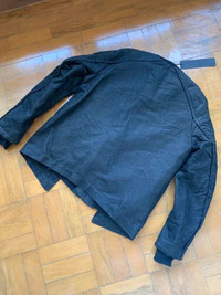 A fantastic new with tags double layered raglan sleeve bomber jacket in black coated heavy cotton with a silk lining from Gareth Pugh made in Italy, same factory as Rick Owens. Top quality rare statement piece beautiful design. See pics for details. Size 46 Italian fits More like a 48 (M) cost over $1300 Pit to pit 56cm Shoulders 45cm Pit to wrist 55cm Length 75cm