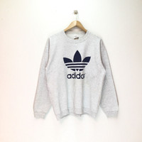 TAG BRAND :- Adidas SIZE :- Large ACTUAL SIZE MEASUREMENT :- ARM PIT TO ARM PIT :- 22" Inches BACK COLLAR TO HEM :- 27" Inches CONDITION :-Good Vintage Condition/Refer Picture COLOUR:- Grey MATERIAL : Cotton/Polyester