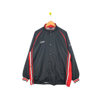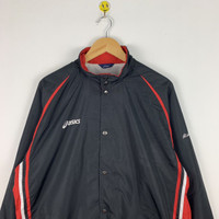 Please read all the description carefully before buying..if you have any questions feel free to ask (Check measurements below) Size : please refer to actual measurement given and compared with your best fitting clothes ) TAG BRAND :- asics SIZE ON TAG :- xl ACTUAL SIZE MEASUREMENT :- ARM PIT TO ARM PIT :- 26" Inchies BACK COLLAR TO HEM :- 31" Inchies CONDITION :-Good Vintage Condition/Refer Picture COLOUR:- black MATERIAL : Cotton/Polyester sku: b168 PAYMENT : PLEASE READ THE DESCRIPTION AND POLICY BEFORE BUYING