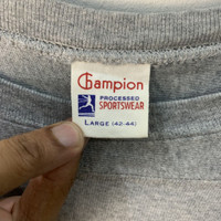 TAG BRAND :- Champion SIZE ON TAG :- Large ACTUAL SIZE MEASUREMENT :- ARM PIT TO ARM PIT :- 21"inchies BACK COLLAR TO HEM :-27 "inchies CONDITION :-Good Vintage Condition/Refer Picture COLOUR:- grey MATERIAL : Cotton/Polyester b205