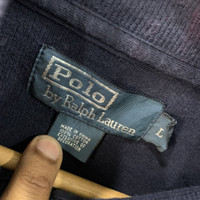 TAG BRAND :- Ralph Lauren SIZE ON TAG :- large ACTUAL SIZE MEASUREMENT :- ARM PIT TO ARM PIT :- 23" Inches BACK COLLAR TO HEM :- 27" Inches CONDITION :-Good Vintage Condition/Refer Picture COLOUR:- Navy MATERIAL : Cotton/Polyester b209