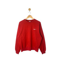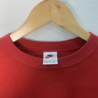 TAG BRAND :- Nike SIZE ON TAG :- large ACTUAL SIZE MEASUREMENT :- Large ARM PIT TO ARM PIT :- 24" Inches BACK COLLAR TO HEM :- 26" Inches CONDITION :-Good Vintage Condition/Refer Picture COLOUR:- red MATERIAL : Cotton/Polyester b209