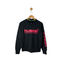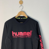 Please read all the description carefully before buying..if you have any questions feel free to ask (Check measurements below) Size : please refer to actual measurement given and compared with your best fitting clothes ) TAG BRAND :- hummel SIZE ON TAG :- xs ACTUAL SIZE MEASUREMENT :- ARM PIT TO ARM PIT :- 20" Inchies BACK COLLAR TO HEM :- 23" Inchies CONDITION :-Good Vintage Condition/Refer Picture COLOUR:- black MATERIAL : Cotton/Polyester sku: b198