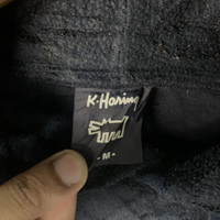 TAG BRAND :- keith haring SIZE :- medium ACTUAL SIZE MEASUREMENT :- ARM PIT TO ARM PIT :- 22" Inches BACK COLLAR TO HEM :- 25" Inches CONDITION :-Good Vintage Condition/Refer Picture COLOUR:- blue navy MATERIAL : Cotton/Polyester b200
