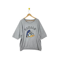 TAG BRAND :- Mickey SIZE ON TAG :- xl ACTUAL SIZE MEASUREMENT :- baggy ARM PIT TO ARM PIT :- 26" Inches BACK COLLAR TO HEM :- 27" Inches CONDITION :-Good Vintage Condition/Refer Picture COLOUR:- grey MATERIAL : Cotton b159