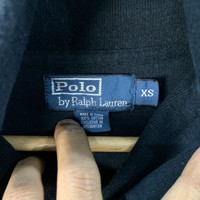 TAG BRAND :- Ralph Lauren SIZE ON TAG :- small ACTUAL SIZE MEASUREMENT :- ARM PIT TO ARM PIT :- 19" Inches BACK COLLAR TO HEM :- 23" Inches CONDITION :-Good Vintage Condition/Refer Picture COLOUR:- navy MATERIAL : Cotton/Polyester b208