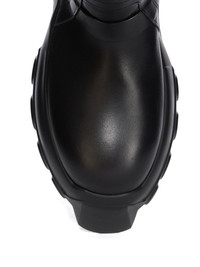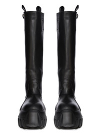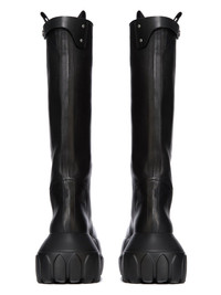RICK OWENS FW25 CONCORDIANS PULL ON MEGA TRACTOR IN BLACK WASHED CALF LEATHER THESE PULL ON MEGA TRACTOR ARE CALF HEIGHT. THEY HAVE A PULL ON BOOT UPPER, A TOPSTITCHED SEAM ARCHING OVER THE FRONT FOOT AND A STITCHED HEEL COUNTER. THEY HAVE SIDE PULL TABS, THREE SNAP DETAIL, A STRAP AT TOP AND A ROUNDED BOZO TOE. THEY FEATURE A BACK SEAM CHANNEL FROM HEEL TO TOP AND, DOUBLE HEIGHT MEGA TRACTOR SOLE THIS MEDIUMWEIGHT COW LEATHER IS VEG TANNED AND FINISHED USING NATURAL WAXES. A FINAL WASH GIVES THIS LEATHER ITS SOFTNESS AND BRINGS OUT THE NATURAL GRAIN TEXTURE OF EACH SKIN. BECAUSE THIS SKIN IS NAKED, NOT FINISHED USING ANY PIGMENTS COVERING THE SKIN, NATURAL MARKINGS AND SHADINGS ARE VISIBLE WHICH MAKES EACH SKIN AND PRODUCT UNIQUE VEG TANNING MEANS ONLY VEGETAL AND NATURAL TANNINS WERE USED IN THE PROCESS OF TANNING AND PRESERVING THIS LEATHER THIS TANNERY IS LWG CERTIFIED WITH A SILVER RATING COLOR: BLACK MATERIAL: UPPER 100% CALF LEATHER LINING 100% CALF LEATHER INSOLE 100% CALF LEATHER SOLE 100% E.V.A SOLE AT HEEL 9CM - SOLE AT TOE 6CM