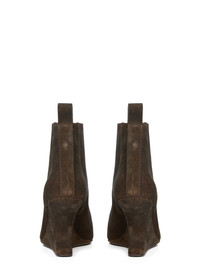 RICK OWENS FW25 CONCORDIANS RUNWAY ANKLE SHARP IN INDIGO CROSTA COW LEATHER THESE ANKLE SHARP ARE JUST UNDER ANKLE HEIGHT. THEY FEATURE A LEATHER UPPER SLANTS SHARPLY INTO A FRONT POINT AT THE TOE. THEY FEATURE AN 8CM CANTILEVER HEEL, ELASTICIZED SIDE PANELS AND A BACK PULL TAB. THIS MEDIUMWEIGHT CROSTA COW SUEDE LEATHER IS MATTE WITH A HAIRY SURFACE TEXTURE. IT IS DYED USING NATURAL INDIGO AND WASHED SEVERAL TIMES TO ACHIEVE ITS FINAL LOOK. IT HAS A NATURAL AND WAXY HAND FEEL ACHIEVED BY DRUMMING THE SKINS WITH WAX SINCE THE INDIGO USED TO DYE THIS LEATHER IS NATURAL, SHADINGS AND COLOR VARIATIONS WILL BE PRESENT. THE COLOR WILL CONTINUE TO EVOLVE AND CHANGE WITH WEAR AND AS IT GET EXPOSED TO LIGHT AND HUMIDITY THIS TANNERY IS LWG CERTIFIED WITH A GOLD RATING COLOR: INDIGO MATERIAL: UPPER 100% COW LEATHER LINING 100% CALF LEATHER INSOLE 100% CALF LEATHER HEEL HEIGHT 8CM