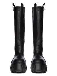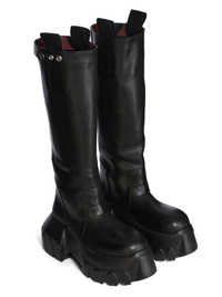RICK OWENS FW25 CONCORDIANS PULL ON MEGA TRACTOR IN BLACK WASHED CALF LEATHER THESE PULL ON MEGA TRACTOR ARE CALF HEIGHT. THEY HAVE A PULL ON BOOT UPPER, A TOPSTITCHED SEAM ARCHING OVER THE FRONT FOOT AND A STITCHED HEEL COUNTER. THEY HAVE SIDE PULL TABS, THREE SNAP DETAIL, A STRAP AT TOP AND A ROUNDED BOZO TOE. THEY FEATURE A BACK SEAM CHANNEL FROM HEEL TO TOP AND, DOUBLE HEIGHT MEGA TRACTOR SOLE THIS MEDIUMWEIGHT COW LEATHER IS VEG TANNED AND FINISHED USING NATURAL WAXES. A FINAL WASH GIVES THIS LEATHER ITS SOFTNESS AND BRINGS OUT THE NATURAL GRAIN TEXTURE OF EACH SKIN. BECAUSE THIS SKIN IS NAKED, NOT FINISHED USING ANY PIGMENTS COVERING THE SKIN, NATURAL MARKINGS AND SHADINGS ARE VISIBLE WHICH MAKES EACH SKIN AND PRODUCT UNIQUE VEG TANNING MEANS ONLY VEGETAL AND NATURAL TANNINS WERE USED IN THE PROCESS OF TANNING AND PRESERVING THIS LEATHER THIS TANNERY IS LWG CERTIFIED WITH A SILVER RATING COLOR: BLACK MATERIAL: UPPER 100% CALF LEATHER LINING 100% CALF LEATHER INSOLE 100% CALF LEATHER SOLE 100% E.V.A SOLE AT HEEL 9CM - SOLE AT TOE 6CM