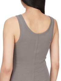RICK OWENS SS26 TEMPLE DAFNE DRESS IN DUST CLASSIC COTTON JERSEY, WASHED GEORGETTE AND LUREX THIS DAFNE DRESS IS FLOOR LENGTH AND IS SLEEVELESS. IT HAS A CLOSE TO THE BODY TANK TOP WITH A LOW SCOOPED NECK, THAT JOINS THE SKIRT AT THE WAIST. IT FEATURES A SKIRT WITH BIAS SEAMS AND A GODET THAT FLARES AT BACK. THIS IS A COMBINATION OF CLASSIC COTTON JERSEY, WASHED GEORGETTE AND LUREX. THIS MEDIUMWEIGHT CLASSIC COTTON JERSEY IS COMPACT WITH A DRY HANDFEEL. THIS JERSEY IS MADE USING GOTS CERTIFIED ORGANIC COTTON WHICH MEANS THE NATURAL FIBER IS GROWN WITHOUT HARMFUL CHEMICALS, LEAVING OUR SOIL, AIR AND WATER CLEANER FROM CONTAMINATES. WE STRIVE TO KEEP OUR PRODUCTION AS LOCAL AS POSSIBLE. THE FULL MANUFATURING CYCLE OF THIS PRODUCT, FROM THE MATERIAL KNITTING TO SEWING AND FINISHING, WAS UNDERTAKEN CLOSE TO OUR HOME BASE IN CONCORDIA, ITALY. THIS LIGHTWEIGHT AND SEMI-TRANSPARENT SILK GEORGETTE HAS A CRISPY HANDFEEL AND A SLIGHTLY TEXTURE SURFACE DUE TO THE WASHED FINISH. IT IS WOVEN IN THE COMO REGION OF ITALY KNOWN FOR ITS HERITAGE OF SILK PRODUCTION. COLOR: DUST MATERIAL:UPPER PART 100% COTTON LOWER PART 100% SILK LINING 59% SILK + 41% METALLIC POLYESTER MODEL IS 181CM TALL MODEL WEARS SIZE 40