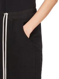 DRKSHDW FW25 CONCORDIANS PULL ON PILLAR SKIRT IN BLACK COMPACT HEAVY JERSEY THIS PULL ON PILLAR SKIRT IS FULL LENGTH AT FRONT AND OPEN TO KNEE HEIGHT AT THE REAR. IT HAS AN ELASTICIZED WAISTBAND WITH DRAWSTRING AND TWO SIDE FRONT POCKETS. THE SKIRT WRAPS TO THE BACK, CREATING A CENTRE BACK SPLIT OPENING AND DRAPING EFFECT. THIS HEAVYWEIGHT AND COMPACT COTTON JERSEY HAS A BRUSHED AND SOFT HANDFEEL. THIS JERSEY IS GARMENT DYED THIS FABRIC IS MADE USING GOTS CERTIFIED ORGANIC COTTON WHICH MEANS THE NATURAL FIBER IS GROWN WITHOUT HARMFUL CHEMICALS, LEAVING OUR SOIL, AIR AND WATER CLEANER FROM CONTAMINATES COLOR: BLACK MATERIAL: 100% COTTON MODEL IS 181CM TALL MODEL WEARS SIZE S