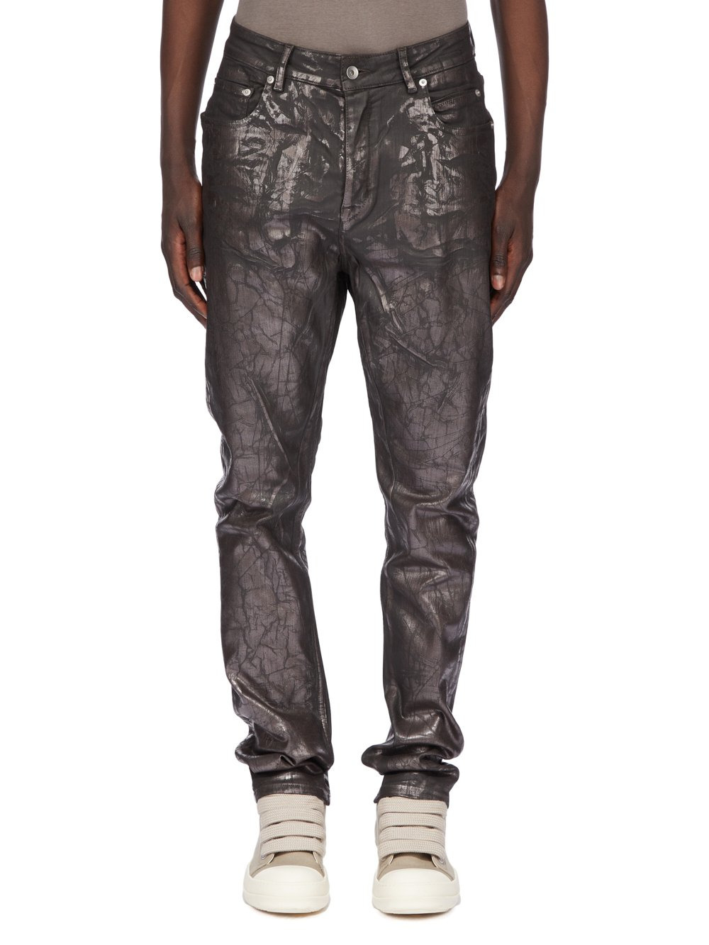 DRKSHDW FW25 CONCORDIANS DETROIT CUT IN IN BRONZE MEGACRUST STRETCH DENIM THESE DETROIT CUT JEANS ARE A SLIM FIT AND LOW-RISE 6 POCKET JEAN. THEY HAVE A CONCEALED BUTTON FLY, A WAISTBAND WITH BELT LOOPS AND POCKET RIVETS AND REAR PATCH POCKETS WITH TOPSTITCHING. THIS LIGHTWEIGHT BRONZE MEGACRUST DENIM IS MADE ON A 10OZ BLACK AND NATURAL STRETCH DENIM. THE READY GARMENT IS OVERDYED DRKDUST AND THEN TREATED WITH LAYERS OF BRONZE COLORED FOIL THAT IS PRESSED ON BY HAND THE NATURAL ASPECTS OF THIS TREATMENT MEANS THE FOIL APPLICATION IS IRREGULAR AND HAS PEELED OFF AND CRACKED IN CERTAIN AREAS AND WILL CONTINUE TO DO SO WITH WEAR AND ABRASION. THIS IS AN INHERENT CHARACTERISTIC OF THIS TYPE OF TREATMENT AND IS A DESIRED A VISUAL ASPECT WHICH ADDS TO THE UNIQUENESS OF EACH PIECE THIS GARMENT IS TREATED IN AN ITALIAN WASH HOUSE BASED IN THE VENETO AREA OF ITALY, THAT PRODUCES IN SMALLER TREATMENT BATHS TO REDUCE WATER WASTE AND UTILIZE A WATER PURIFYING PROCESS THAT ENABLES THEM TO RECYCLE A PORTION OF THE WATER USED. ALL OF OUR DENIM WASHES ARE ZDHC CERTIFIED COLOR: BRONZE MATERIAL: 91% COTTON + 6% ELASTOMULTIESTER + 3% RUBBER FIBER MODEL IS 189CM TALL MODEL WEARS SIZE 31
