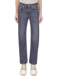 DRKSHDW FW25 CONCORDIANS FOG CUT IN 13OZ STONE WASHED GREY DENIM THESE FOG CUT ARE AN ABOVE ANKLE LENGTH, 6-POCKET JEAN WITH A LOW RISE AND REGULAR FIT. THEY HAVE A CONCEALED SILVER ZIPPER FLY WITH TOP BUTTON. THEY FEATURE CROTCH AND KNEE WHISKERING. THIS MEDIUMWEIGHT STONE WASHED GREY DENIM IS MADE ON A 13OZ JAPANESE GREY AND BLACK DENIM WOVEN IN FUKUYAMA PREFECTURE BY A MILL FOUNDED IN 1893. THE READY GARMENT IS STONE WASHED THIS GARMENT IS TREATED IN AN ITALIAN WASH HOUSE BASED IN THE VENETO AREA OF ITALY, THAT PRODUCES IN SMALLER TREATMENT BATHS TO REDUCE WATER WASTE AND UTILIZE A WATER PURIFYING PROCESS THAT ENABLES THEM TO RECYCLE A PORTION OF THE WATER USED. ALL OF OUR DENIM WASHES ARE ZDHC CERTIFIED COLOR: WASHED GREY MATERIAL: 100% COTTON POCKETS LINING: 52% POLYESTER + 48% COTTON MODEL IS 181CM TALL MODEL WEARS SIZE 26
