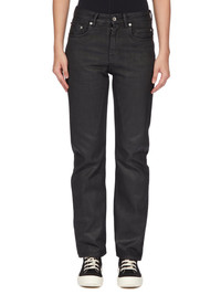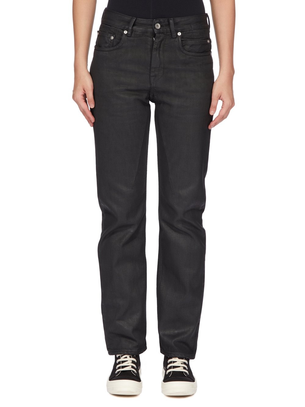 DRKSHDW FW25 CONCORDIANS FOG CUT IN 13OZ BLACK WAX DENIM THESE FOG CUT ARE AN ABOVE ANKLE LENGTH, 6-POCKET JEAN WITH A LOW RISE AND REGULAR FIT. THEY HAVE A CONCEALED SILVER ZIPPER FLY WITH TOP BUTTON. THEY FEATURE CROTCH AND KNEE WHISKERING. THIS MEDIUMWEIGHT BLACK WAX DENIM IS MADE ON A 13OZ JAPANESE BLACK AND NATURAL DENIM. THE READY GARMENT IS OVERDYED BLACK AND TREATED WITH A WAX FINISH. A FINAL WASH GIVES THIS GARMENT ITS SOFTNESS THIS GARMENT IS TREATED IN AN ITALIAN WASH HOUSE BASED IN THE VENETO AREA OF ITALY, THAT PRODUCES IN SMALLER TREATMENT BATHS TO REDUCE WATER WASTE AND UTILIZE A WATER PURIFYING PROCESS THAT ENABLES THEM TO RECYCLE A PORTION OF THE WATER USED. ALL OF OUR DENIM WASHES ARE ZDHC CERTIFIED COLOR: BLACK WAX MATERIAL: 100% COTTON POCKETS LINING 52% POLYESTER + 48% COTTON MODEL IS 181CM TALL MODEL WEARS SIZE 26