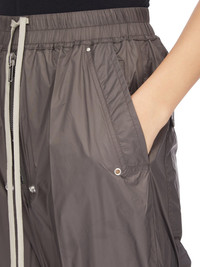 DRKSHDW FW25 CONCORDIANS GETH BELAS IN BRONZE RECYCLED NYLON THESE GETH BELA PANTS ARE FULL-LENGTH WITH A LOW CROTCH AND WIDE LEG. THEY FEATURE AN ELASTICIZED WAISTBAND WITH VERTICAL STITCHING AND DRAWSTRING AND A BELA EXPOSED CENTER ZIPPER WITH TWO SNAP DETAIL AT BOTTOM. THEY HAVE SIDE POCKETS WITH EYELET AND RIVET DETAIL AND BACK POCKETS WITH FLAPS AND VISIBLE SNAP CLOSURES. THIS AIRY AND LIGHTWEIGHT NYLON IS MADE USING GRS CERTIFIED RECYCLED NYLON WHICH ENSURES A REDUCTION IN WATER CONSUMPTION, EMISSIONS AND HAZARDOUS WASTE, LESSENING THE DEPENDENCE ON NON-RENEWABLE RESOURCES COLOR: BRONZE MATERIAL: 100% NYLON KNIT RIB COLLAR + WRIST BAND 98% COTTON + 2% ELASTANE PADDING 100% POLYESTER MODEL IS 181CM TALL MODEL WEARS SIZE S