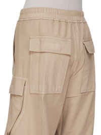 DRKSHDW FW25 CONCORDIANS DOUBLE CARGO JUMBO BELAS IN DIRTY PEARL LIGHT FLANNEL THESE DOUBLE CARGO JUMBO BELA PANTS ARE FULL-LENGTH WITH A LOW CROTCH AND WIDE LEG. THEY FEATURE AN ELASTICIZED WAISTBAND WITH DRAWSTRING AND A BELA EXPOSED CENTER ZIPPER WITH TWO SNAP DETAIL, AND SIDE WELT POCKETS WITH RIVETS. THEY FEATURE TWO BEVELED CARGO POCKETS ON THE THIGH, WITH TWO SQUARE CARGO POCKETS BELOW AND TWO SQUARE BACK POCKETS. THEY ALL HAVE FLAPS AND TOPSTITCHING. THIS LIGHTWEIGHT COTTON FLANNEL FABRIC IS GARMENT DYED WITH A SOFT AND BRUSHED HANDFEEL THIS FABRIC IS MADE USING GOTS CERTIFIED ORGANIC COTTON WHICH MEANS THE NATURAL FIBER IS GROWN WITHOUT HARMFUL CHEMICALS, LEAVING OUR SOIL, AIR AND WATER CLEANER FROM CONTAMINATES COLOR: DIRTY PEARL MATERIAL: 100% COTTON MODEL IS 181CM TALL MODEL WEARS SIZE S