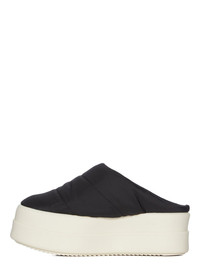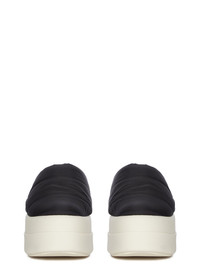 DRKSHDW FW25 CONCORDIANS MEGA BUMPER SLIP ON LUNAR IN BLACK/MILK NYLON CANVAS THESE MEGA BUMPER SLIP ON LUNAR ARE MULE-LIKE. THEY HAVE A SOFT PADDED UPPER WITH QUILTED STITCHED PANELS. AND FEATURE DOUBLE HEIGHT, SHARK-TOOTHED MEGA BUMPER SOLES. THIS MEDIUMWEIGHT NYLON CANVAS IS COMPACT WITH A SOFT AND TECHNICAL HANDFEEL THIS FABRIC IS MADE USING GRS CERTIFIED RECYCLED NYLON WHICH ENSURES A REDUCTION IN WATER CONSUMPTION, EMISSIONS AND HAZARDOUS WASTE, LESSENING THE DEPENDENCE ON NON-RENEWABLE RESOURCES COLOR: BLACK/MILK MATERIAL: UPPER 100% NYLON LINING 100% NYLON PADDING 70% POLYURETHANE + 30% POLYESTER SOLE HEIGHT 6.5CM
