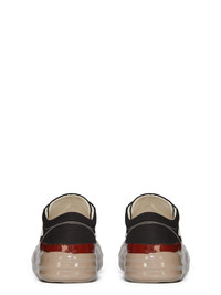 DRKSHDW FW25 CONCORDIANS LACELESS VINTAGE SNEAKS IN BLACK/RED/DRK BEIGE 13OZ OVERDYED DENIM AND SUEDE LEATHER THESE LACELESS VINTAGE SNEAKS ARE UNDER-ANKLE HEIGHT SLIP-ONS, AND HAVE TOE CAPS AND SHARK TOOTH SOLES.THEY FEATURE A GRAPHIC LEATHER APPLIQUE ON THE SIDE FOOT AND CONTRAST STITCHING. THIS IS A COMBINATION OF 13OZ OVERDYED DENIM AND SUEDE LEATHER THIS MEDIUMWEIGHT 13OZ DENIM IS OVERDYED AND HAS A SOFT AND WASHED HANDFEEL THIS FABRIC IS MADE USING GOTS CERTIFIED ORGANIC COTTON WHICH MEANS THE NATURAL FIBER IS GROWN WITHOUT HARMFUL CHEMICALS, LEAVING OUR SOIL, AIR AND WATER CLEANER FROM CONTAMINATES THESE SHOES HAVE BEEN TREATED WITH A RESISTANT SILICONE. THE SHOES ARE DIPPED BY HAND AND LEFT TO TRY MULTIPLE TIMES IN ORDER TO ACHIEVE THE MULTICOLORED EFFECT COLOR: BLACK/RED/DRK BEIGE MATERIAL: UPPER 100% COTTON LATERAL DETAILS 100% CALF LEATHER LINING 100% COTTON SOLE HEIGHT 3.5CM