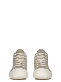DRKSHDW FW25 CONCORDIANS LOW SNEAKS IN DIRTY PEARL/MILK 13OZ OVERDYED DENIM THESE LOW SNEAKS ARE UNDER-ANKLE HEIGHT AND FEATURE SIX EYELETS, LACES, TOE CAPS AND SHARK TOOTH SOLES. THIS MEDIUMWEIGHT 13OZ DENIM IS OVERDYED AND HAS A SOFT AND WASHED HANDFEEL THIS FABRIC IS MADE USING GOTS CERTIFIED ORGANIC COTTON WHICH MEANS THE NATURAL FIBER IS GROWN WITHOUT HARMFUL CHEMICALS, LEAVING OUR SOIL, AIR AND WATER CLEANER FROM CONTAMINATES COLOR: DIRTY PEARL/MILK MATERIAL: UPPER 100% COTTON TOE 70% POLYURETHANE + 30% VISCOSE LINING 100% COTTON SOLE HEIGHT 3.5CM