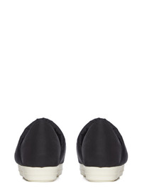 DRKSHDW FW25 CONCORDIANS PUFFER SLIP ON IN BLACK/MILK NYLON CANVAS THESE PUFFER SLIP ONS ARE UNDER-ANKLE HEIGHT. THEY HAVE A SOFT PADDED PULL ON UPPER WITH QUILTING LINES AND SHARK TOOTH SOLES. THIS MEDIUMWEIGHT NYLON CANVAS IS COMPACT WITH A SOFT AND TECHNICAL HANDFEEL THIS FABRIC IS MADE USING GRS CERTIFIED RECYCLED NYLON WHICH ENSURES A REDUCTION IN WATER CONSUMPTION, EMISSIONS AND HAZARDOUS WASTE, LESSENING THE DEPENDENCE ON NON-RENEWABLE RESOURCES COLOR: BLACK/MILK MATERIAL: UPPER 100% NYLON LINING 100% NYLON PADDING 100% POLYESTER SOLE HEIGHT 3.5CM