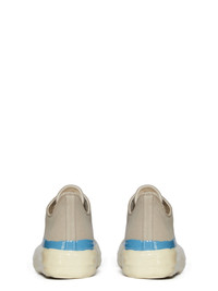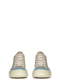 DRKSHDW FW25 CONCORDIANS LOW SNEAKS IN DIRTY PEARL/BLUE/LIGHT BEIGE 13OZ OVERDYED DENIM THESE LOW SNEAKS ARE UNDER-ANKLE HEIGHT AND FEATURE SIX EYELETS, LACES, TOE CAPS AND SHARK TOOTH SOLES. THIS MEDIUMWEIGHT 13OZ DENIM IS OVERDYED AND HAS A SOFT AND WASHED HANDFEEL THIS FABRIC IS MADE USING GOTS CERTIFIED ORGANIC COTTON WHICH MEANS THE NATURAL FIBER IS GROWN WITHOUT HARMFUL CHEMICALS, LEAVING OUR SOIL, AIR AND WATER CLEANER FROM CONTAMINATES THESE SHOES HAVE BEEN TREATED WITH A RESISTANT SILICONE. THE SHOES ARE DIPPED BY HAND AND LEFT TO TRY MULTIPLE TIMES IN ORDER TO ACHIEVE THE MULTICOLORED EFFECT COLOR: DIRTY PEARL/BLUE/LIGHT BEIGE MATERIAL: UPPER 100% COTTON TOE 70% POLYURETHANE + 30% VISCOSE LINING 100% COTTON SOLE HEIGHT 3.5CM
