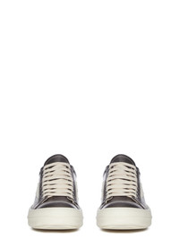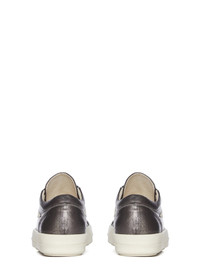DRKSHDW FW25 CONCORDIANS VINTAGE SNEAKS IN BRONZE/MILK/MILK 13OZ BRONZE MEGACRUST DENIM AND SUEDE LEATHER THESE VINTAGE SNEAKS ARE UNDER-ANKLE HEIGHT AND HAVE EIGHT EYELETS WITH LACES, TOE CAPS AND SHARK TOOTH SOLES.THEY FEATURE A GRAPHIC LEATHER APPLIQUE ON THE SIDE FOOT AND CONTRAST STITCHING. THIS IS A COMBINATION OF 13OZ BRONZE MEGACRUST DENIM AND SUEDE LEATHER THIS MEDIUMWEIGHT BRONZE MEGACRUST DENIM IS MADE ON A 13OZ JAPANESE BLACK AND NATURAL DENIM. THE READY GARMENT IS OVERDYED DRKDUST AND THEN TREATED WITH LAYERS OF BRONZE COLORED FOIL THAT IS PRESSED ON BY HAND THE NATURAL ASPECTS OF THIS TREATMENT MEANS THE FOIL APPLICATION IS IRREGULAR AND HAS PEELED OFF AND CRACKED IN CERTAIN AREAS AND WILL CONTINUE TO DO SO WITH WEAR AND ABRASION. THIS IS AN INHERENT CHARACTERISTIC OF THIS TYPE OF TREATMENT AND IS A DESIRED VISUAL ASPECT WHICH ADDS TO THE UNIQUENESS OF EACH PIECE THIS GARMENT IS TREATED IN AN ITALIAN WASH HOUSE BASED IN THE VENETO AREA OF ITALY, THAT PRODUCES IN SMALLER TREATMENT BATHS TO REDUCE WATER WASTE AND UTILIZE A WATER PURIFYING PROCESS THAT ENABLES THEM TO RECYCLE A PORTION OF THE WATER USED. ALL OF OUR DENIM WASHES ARE ZDHC CERTIFIED COLOR: BRONZE/MILK/MILK MATERIAL: UPPER 100% COTTON LATERAL DETAILS 100% CALF LEATHER LINING 100% COTTON SOLE HEIGHT 3.5CM
